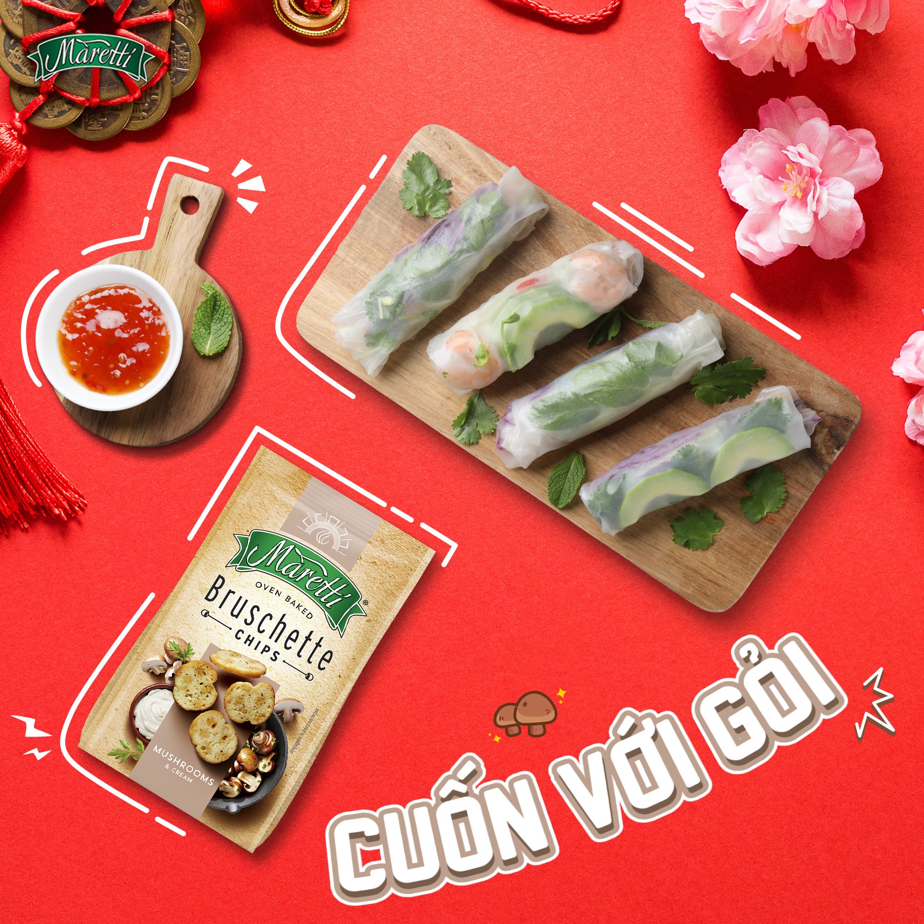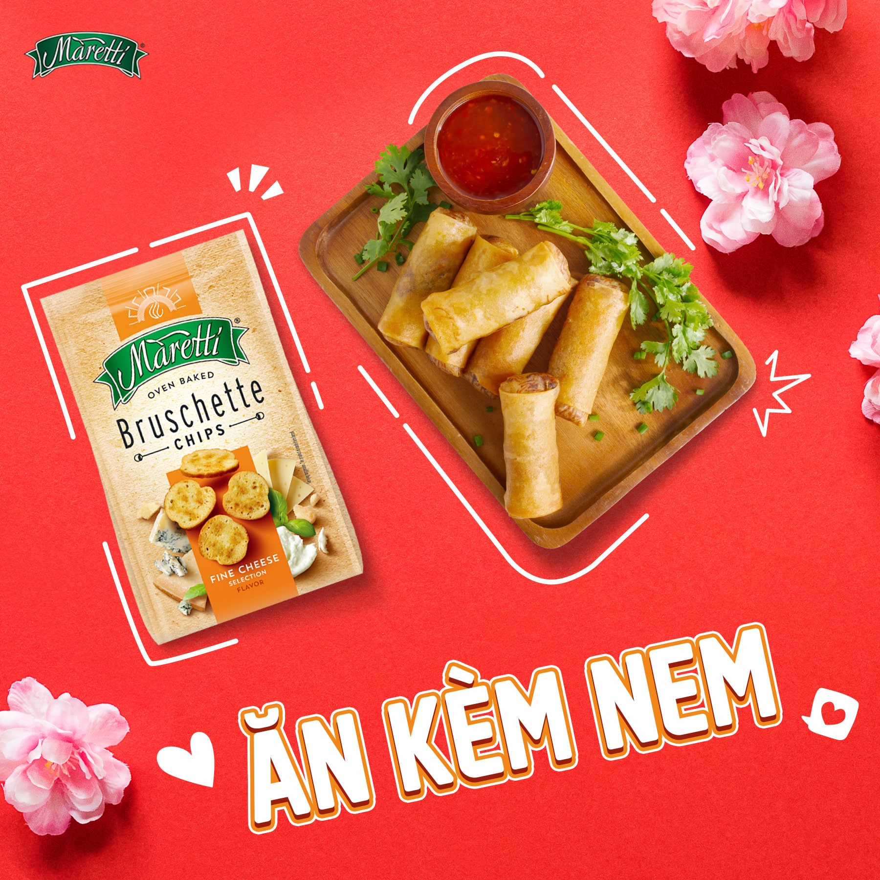 Nem – món ăn luôn có trong những dịp thân mật đầy ấm cúng và vui vẻ, giờ đây lại có cơ hội làm mới mình khi kết hợp cùng bánh mì nướng Maretti. Nem đã giòn nay thêm Maretti giòn thơm tạo nên một trải nghiệm ẩm thực gấp đôi độ giòn cực kỳ hấp dẫn. Đây không chỉ là sự kết hợp của những nguyên liệu quen thuộc, mà còn là biểu hiện của sự sáng tạo, phá cách, và cái nhìn táo bạo về ẩm thực hiện đại.